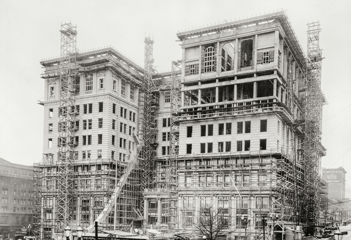In 1914, the new courthouse construction was under way. Together with contractors Puget Sound Bridge & Dredging, architect A. Warren Gould constructed a five-story steel frame and reinforced concrete structure which was dedicated May 4, 1916, for a total cost of $1,271,645.83.