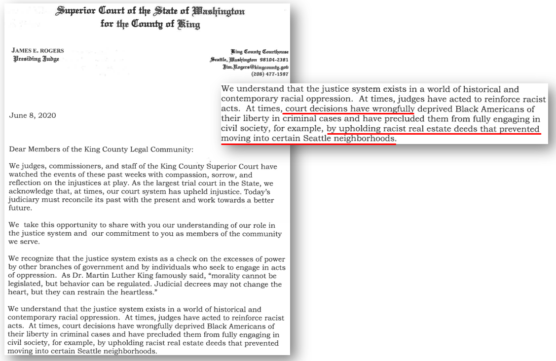 Following the Washington Supreme Court’s 2020 letter to the legal community recognizing the role that courts have played in devaluing Black lives, the King County Superior Court sent its own letter to the local legal community. That letter acknowledged the court’s role in upholding injustice at times, and recognized that the court had previously upheld racist deed restrictions, and had at times...