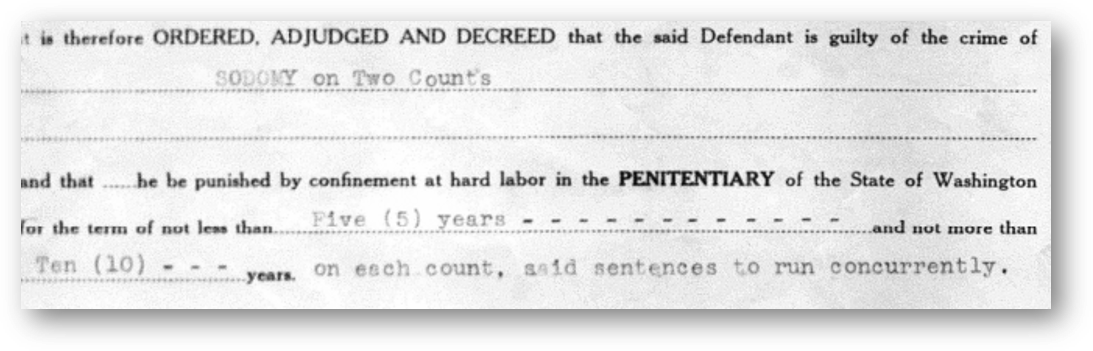 - An examination of criminal law, specifically sodomy laws (decriminalized in Washington in 1975)