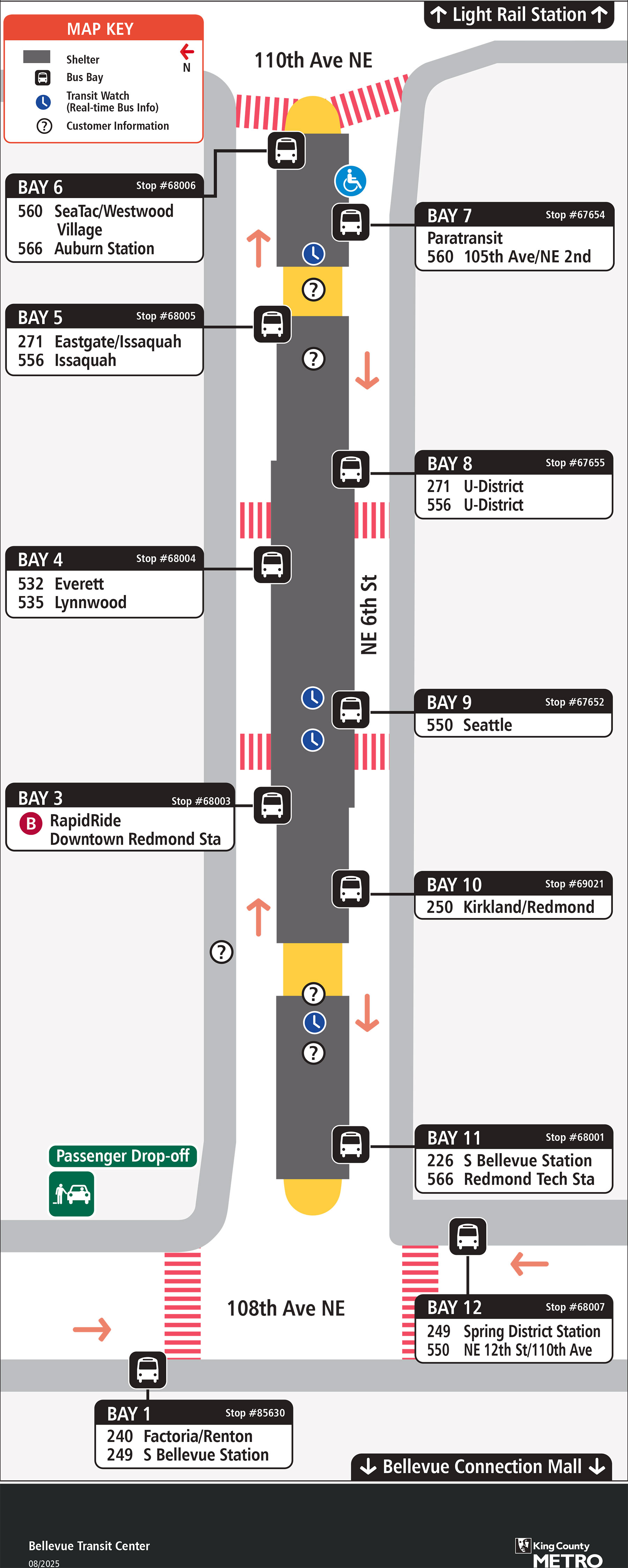 Map showing Bellevue Transit Center boarding locations