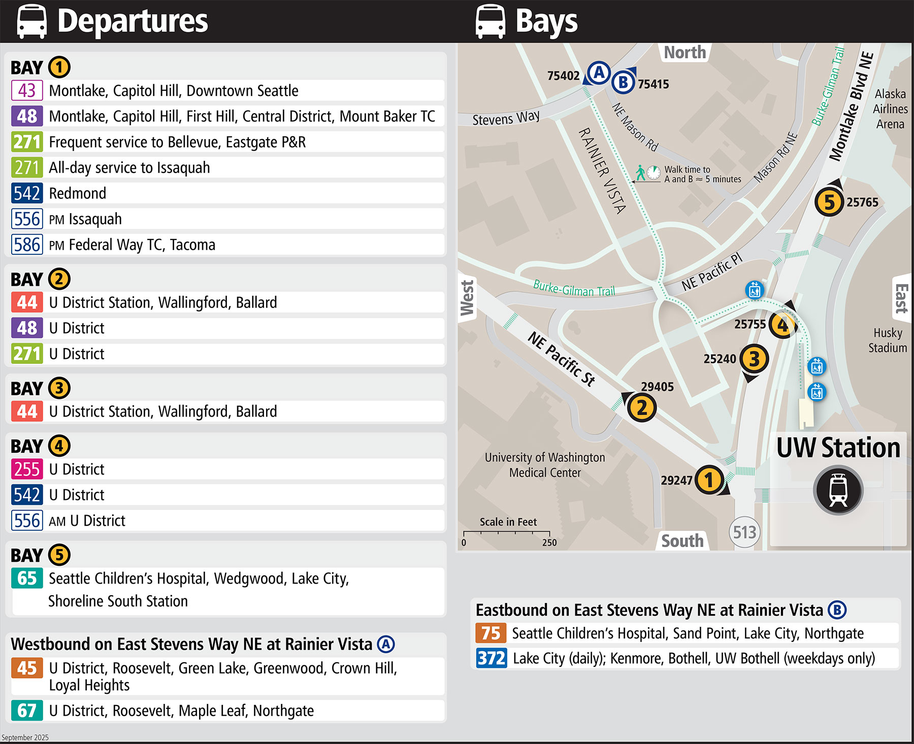 • 372 Lake City (daily); Kenmore, Bothell, UW Bothell (weekdays only)