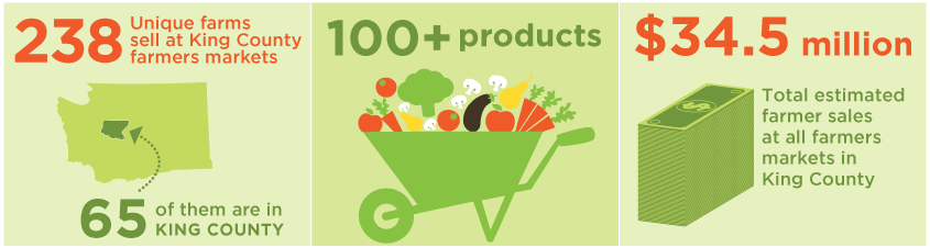 With more than 40 farmers markets spread across King County you are never far from farm fresh, local food.